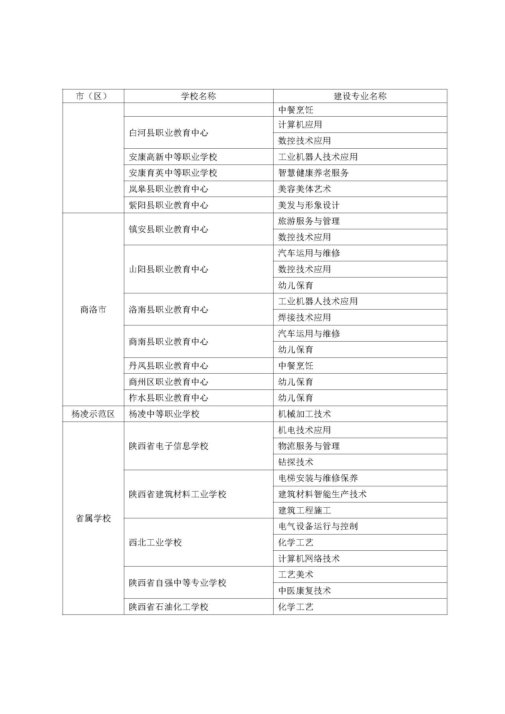 根據《陜西省教育廳 陜西省財政廳關于印發(fā)〈陜西省中等職業(yè)教育優(yōu)質學校和優(yōu)質專業(yè)建設計劃實施方案〉的通知》(陜教〔2023〕10號,以下簡稱《實施方案》),經學校申報、市級推薦、形式審查、專家評審和結果公示等程序,現將50所陜西省高水平示范性中等職業(yè)學校和150個示范專業(yè)建設項目(以下簡稱“雙示范”建設項目)名單予以公布,并就做好有關工作通知如下。