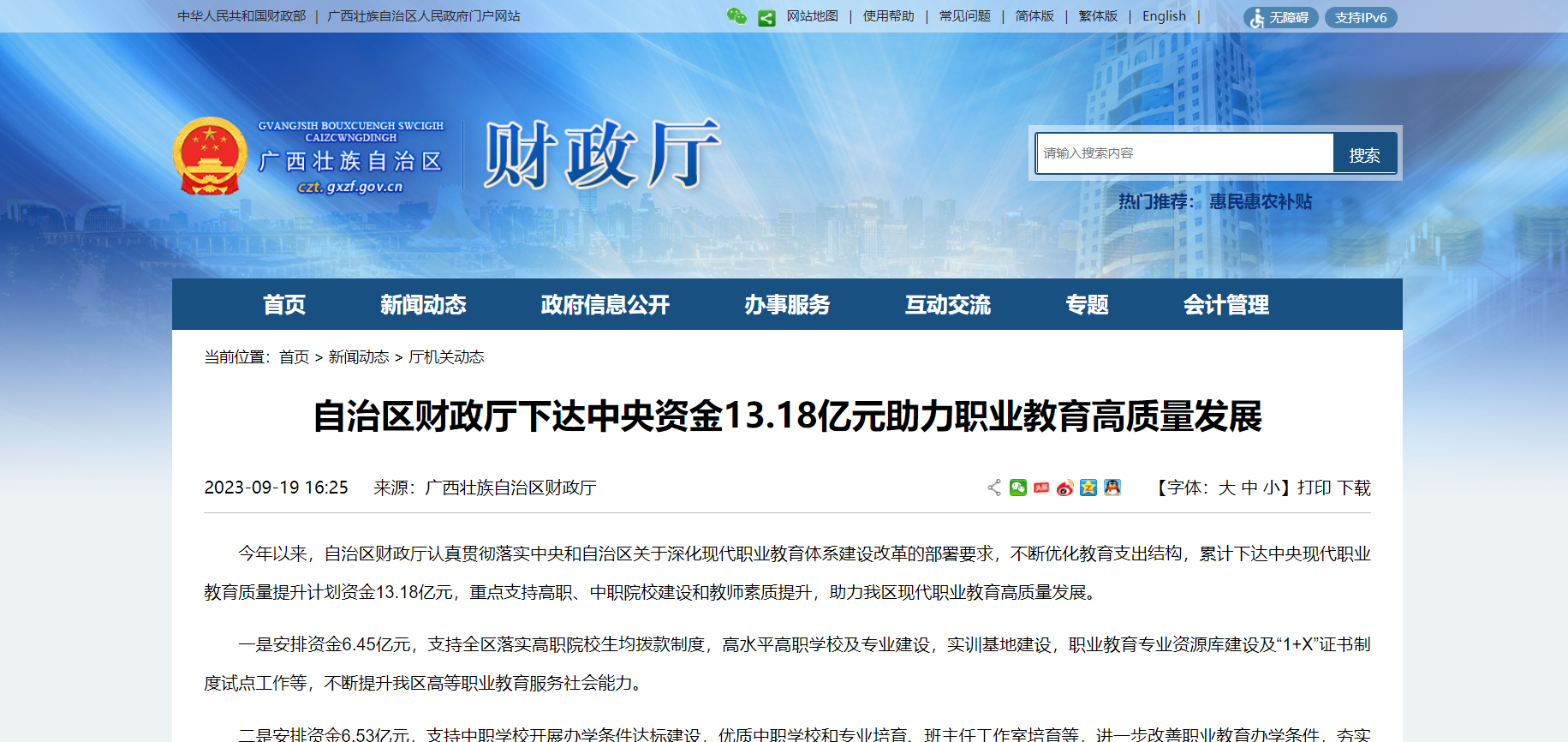 據(jù)了解,上述資金中,6.45億元用于支持廣西落實高職院校生均撥款制度、高水平高職學(xué)校及專業(yè)建設(shè)、實訓(xùn)基地建設(shè)及職業(yè)教育專業(yè)資源庫建設(shè)等,提升廣西高等職業(yè)教育服務(wù)社會能力。