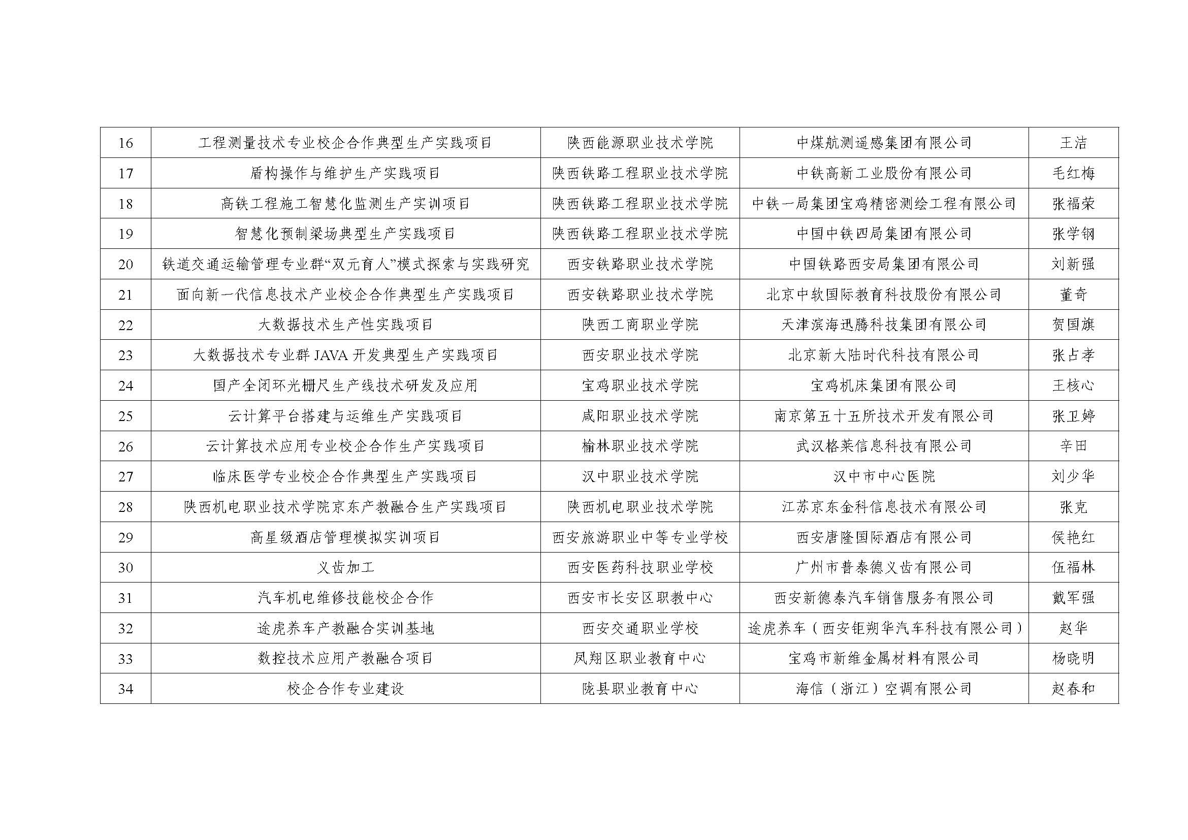 根據(jù)《陜西省教育廳辦公室關于加快推進落實現(xiàn)代職業(yè)教育體系建設改革重點任務的通知》(陜教職辦〔2023〕33號),陜西省教育廳組織開展了2023年陜西職業(yè)教育一流核心課程、生產(chǎn)實踐項目、職業(yè)教育標準、資源和裝備等項目的申報工作。經(jīng)各地各校推薦、省教育廳初審,將符合申報條件的64門一流核心課程、51個校企合作典型生產(chǎn)實踐項目、14個具有國際影響力的職業(yè)教育標準、16個具有國際影響力的職業(yè)教育資源、5個具有國際影響力的職業(yè)教育裝備項目公示。