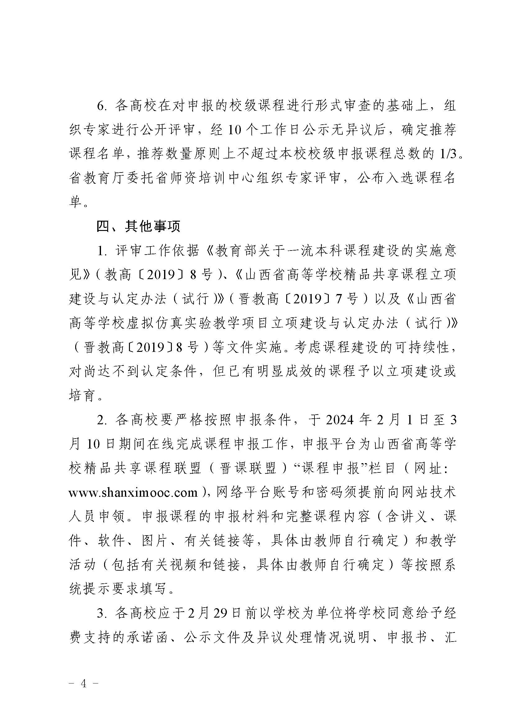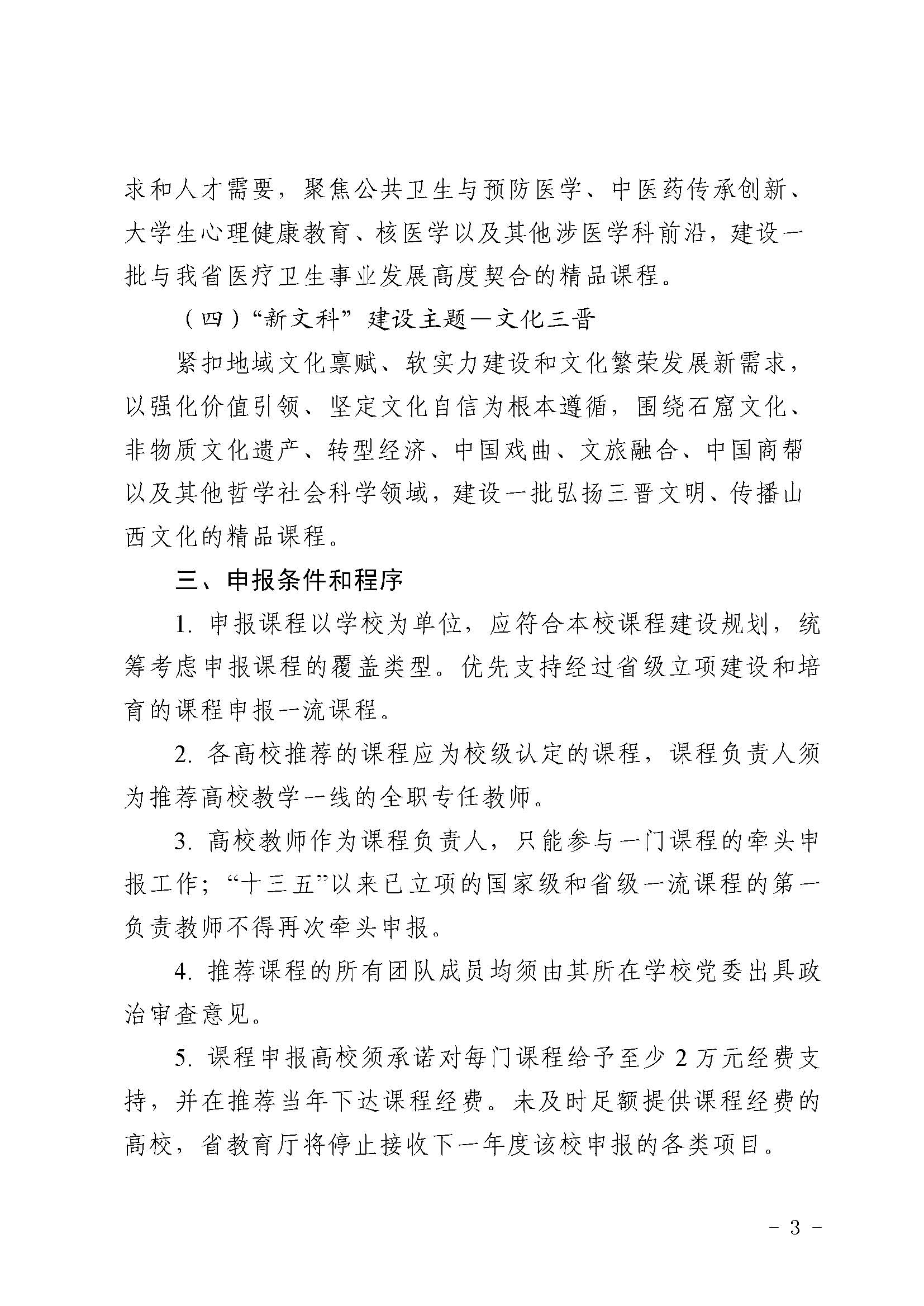 山西省教育廳1月26日在其官網(wǎng)發(fā)布關(guān)于開展 2024 年山西省一流本科課程認(rèn)定工作的通知,重點(diǎn)支持“新工科”建設(shè)主題—創(chuàng)新三晉,“新農(nóng)科”建設(shè)主題—生態(tài)三晉,“新醫(yī)科”建設(shè)主題—健康三晉等領(lǐng)域,課程申報高校須承諾對每門課程給予至少2 萬元經(jīng)費(fèi)支持,并在推薦當(dāng)年下達(dá)課程經(jīng)費(fèi)。未及時足額提供課程經(jīng)費(fèi)的高校,省教育廳將停止接收下一年度該校申報的各類項(xiàng)目。