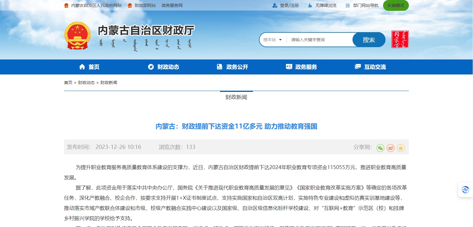 為提升職業(yè)教育服務(wù)高質(zhì)量教育體系建設(shè)的支撐力,近日,內(nèi)蒙古自治區(qū)財(cái)政提前下達(dá)2024年職業(yè)教育專項(xiàng)資金115055萬元,推進(jìn)職業(yè)教育高質(zhì)量發(fā)展。