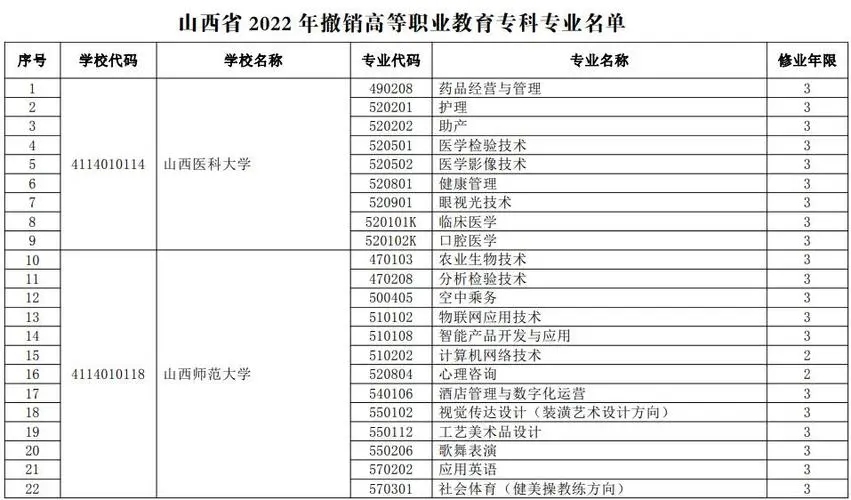 近日,山西省教育廳發(fā)布了《關于公布山西省2022年新增及撤銷高等職業(yè)教育??茖I(yè)的通知》,一起來看通知原文?!? 山西省教育廳關于公布山西省2022年新增及撤銷高等職業(yè)教育??茖I(yè)的通......